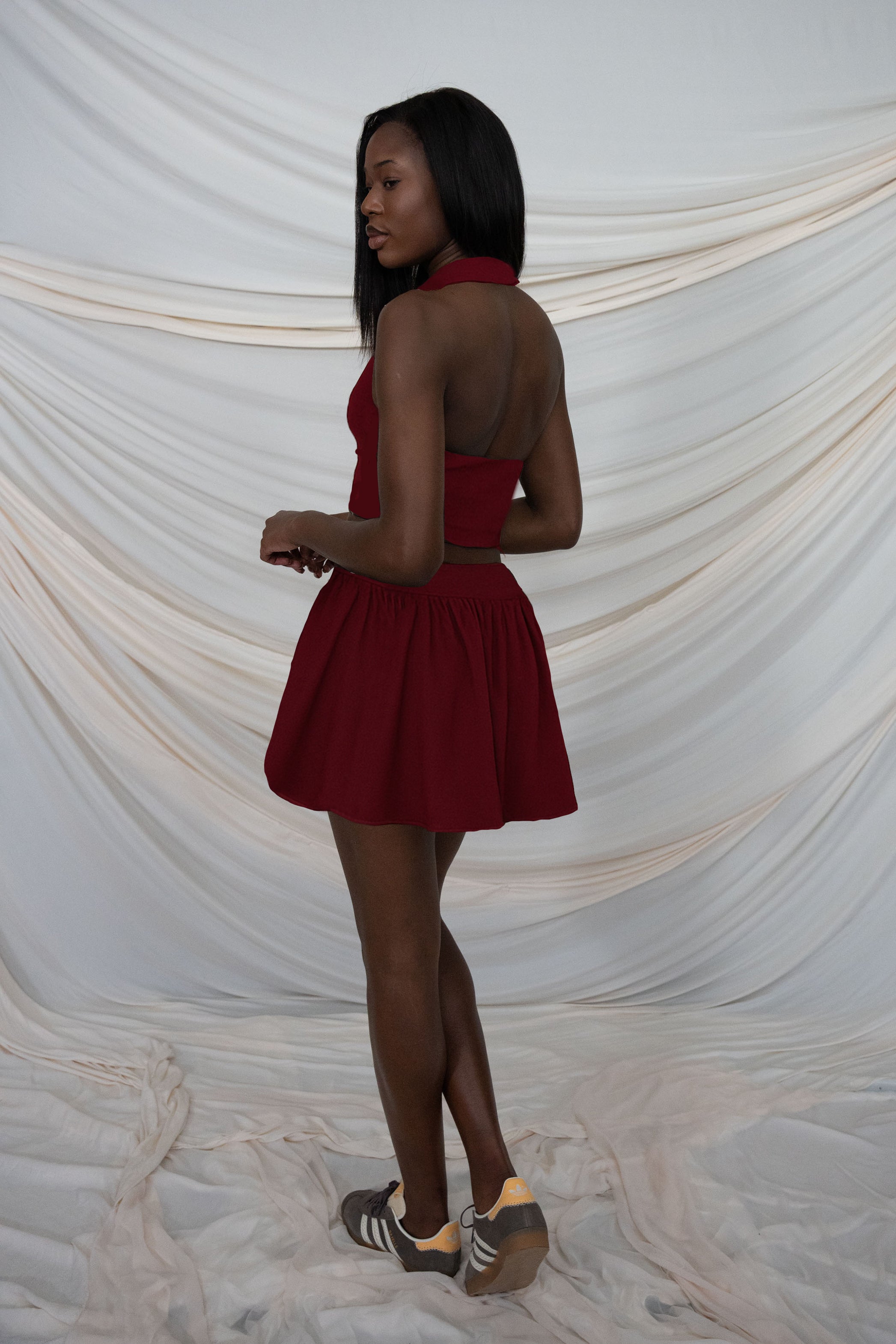 Bordo Pileli Tenis Eteği ile günlük stilini sportif ve şık bir seviyeye taşı. İç kısmında yer alan şort detayı sayesinde hem konforlu hem de özgüvenli bir kullanım sunar. Yüksek belli tasarımı vücut hatlarını zarifçe vurgularken, yumuşak pileleri eteğe hareket ve hacim kazandırır.
