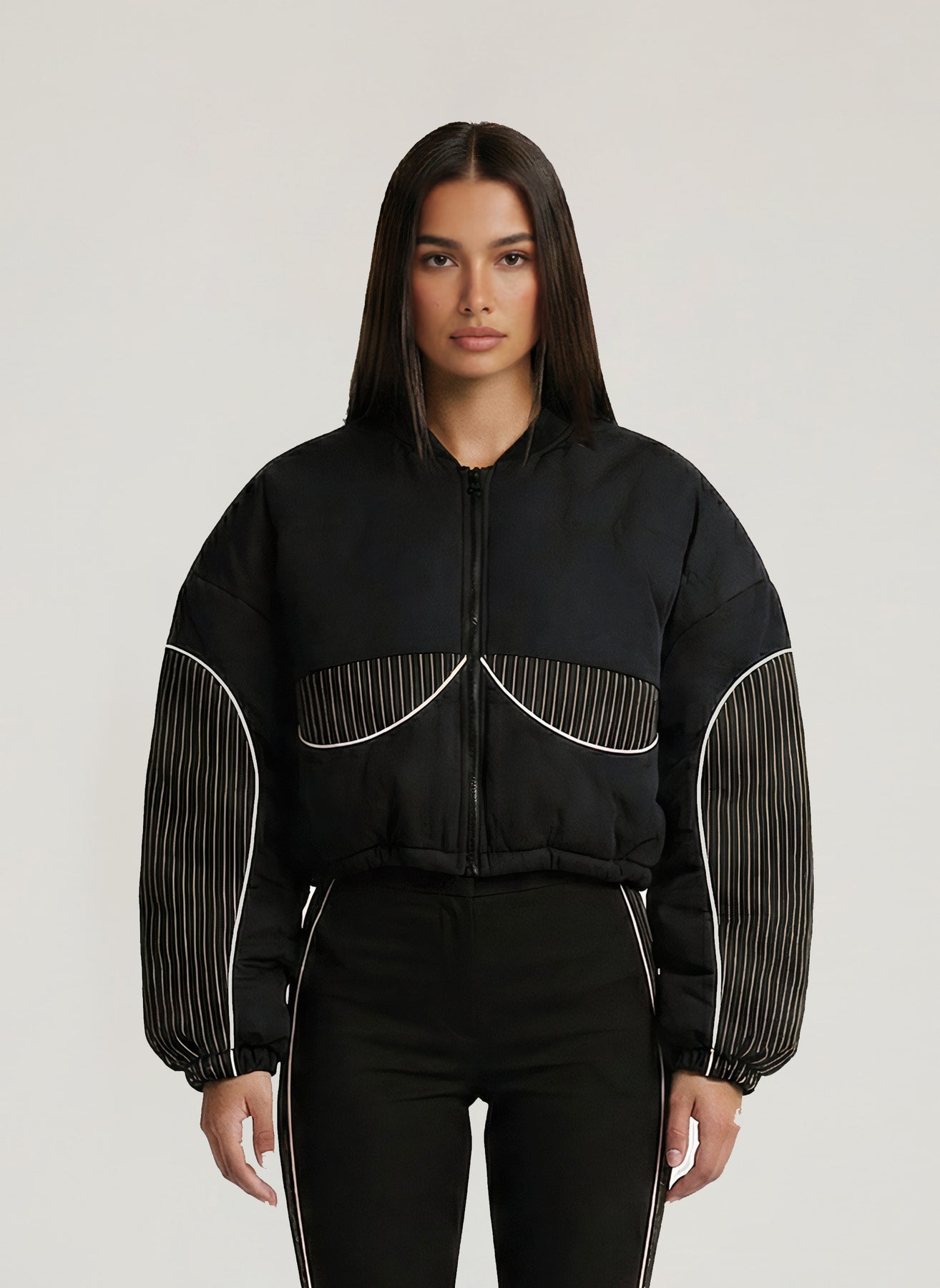Black Striped Padded Coat