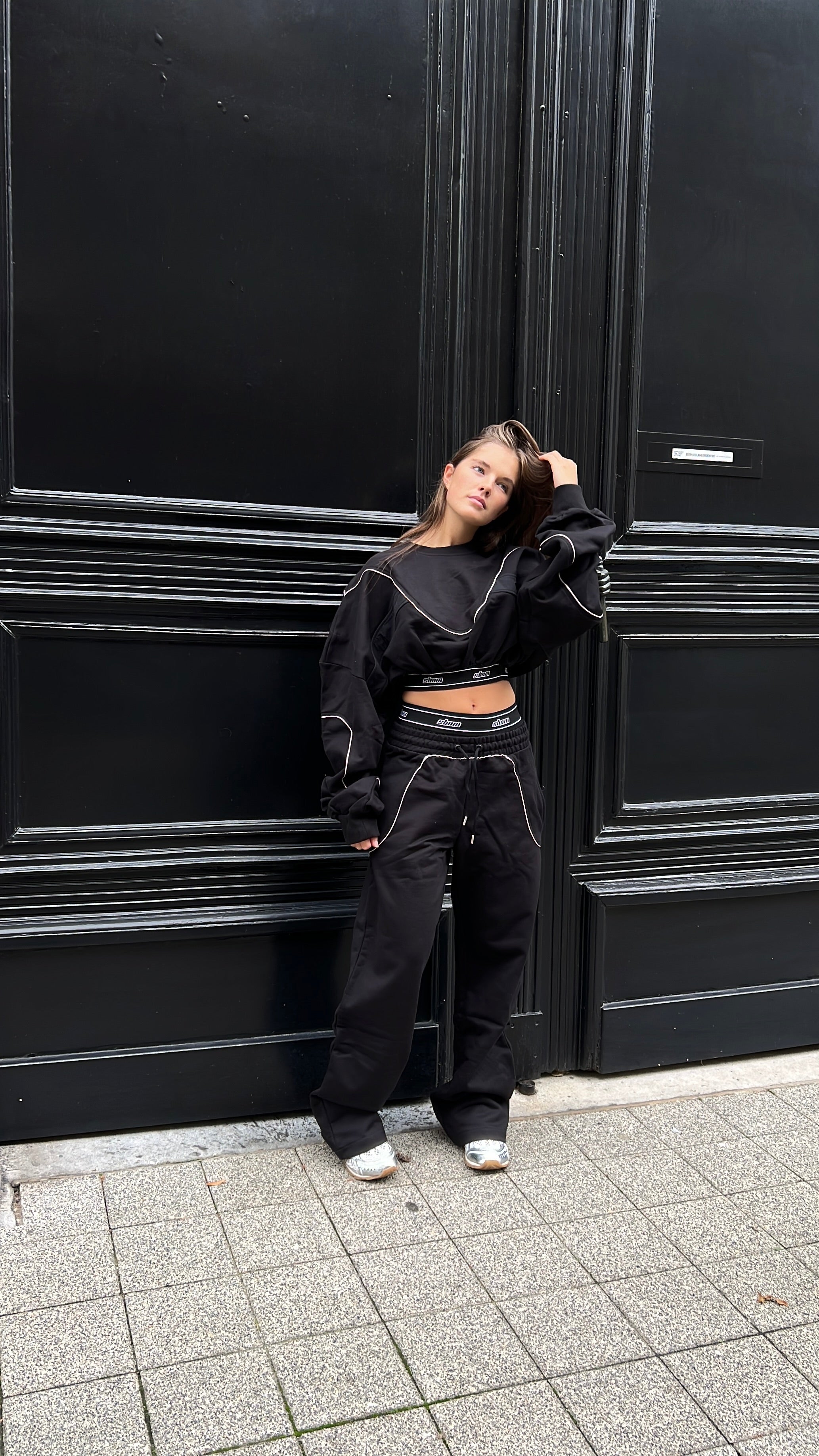 Siyah Logo Bel Bantlı Boxer Kesim Eşofman Altı